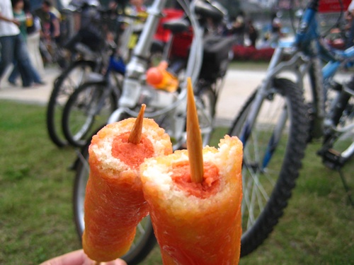 對我來說~ 騎腳踏車最開心的就是休息時有東西可以吃! 那瞬間不管吃啥都超美味哩~