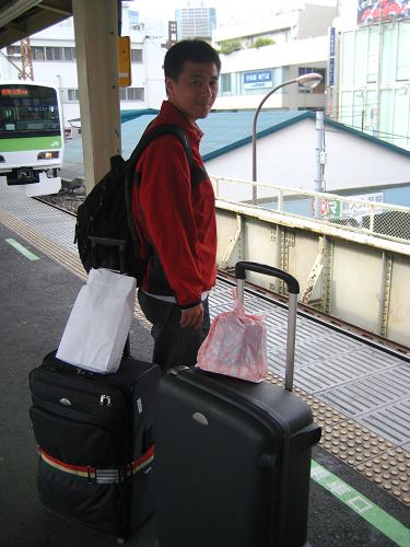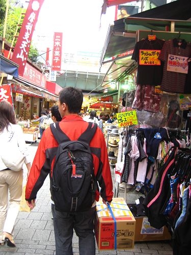 ↓ 可憐的丹拔扛著不知道有幾斤的電鍋 背著笨重大背包 走在熱死人的上野