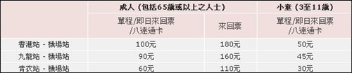 像我們從機場搭到香港站 原本票價一個人是港幣100元