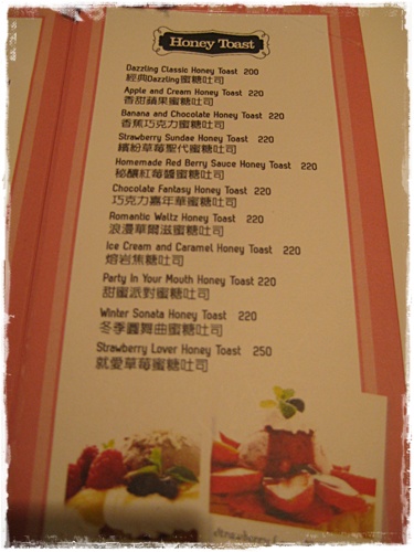 打開菜單, 店內人氣的蜜糖吐司口味就有十多種哩!!!!!