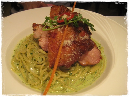再來是Co麻的比力佛青醬雞腿麵 看那雞腿烤的有多漂亮呀!!!!!