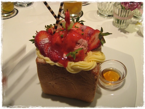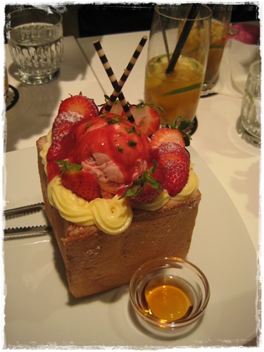我們順應店員推薦的點了「就愛草莓蜜糖吐司」 好期待喔)))
