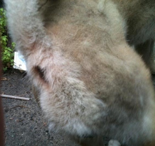 身上有幾處毛較少,不知道是不是因為皮膚病!