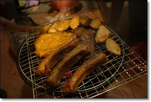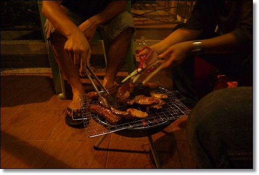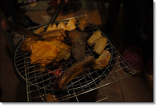 凌晨兩點鐘....... 大概烤到第三輪了吧! 最終還是得使出這一招.... 輸的要吃肉~~~